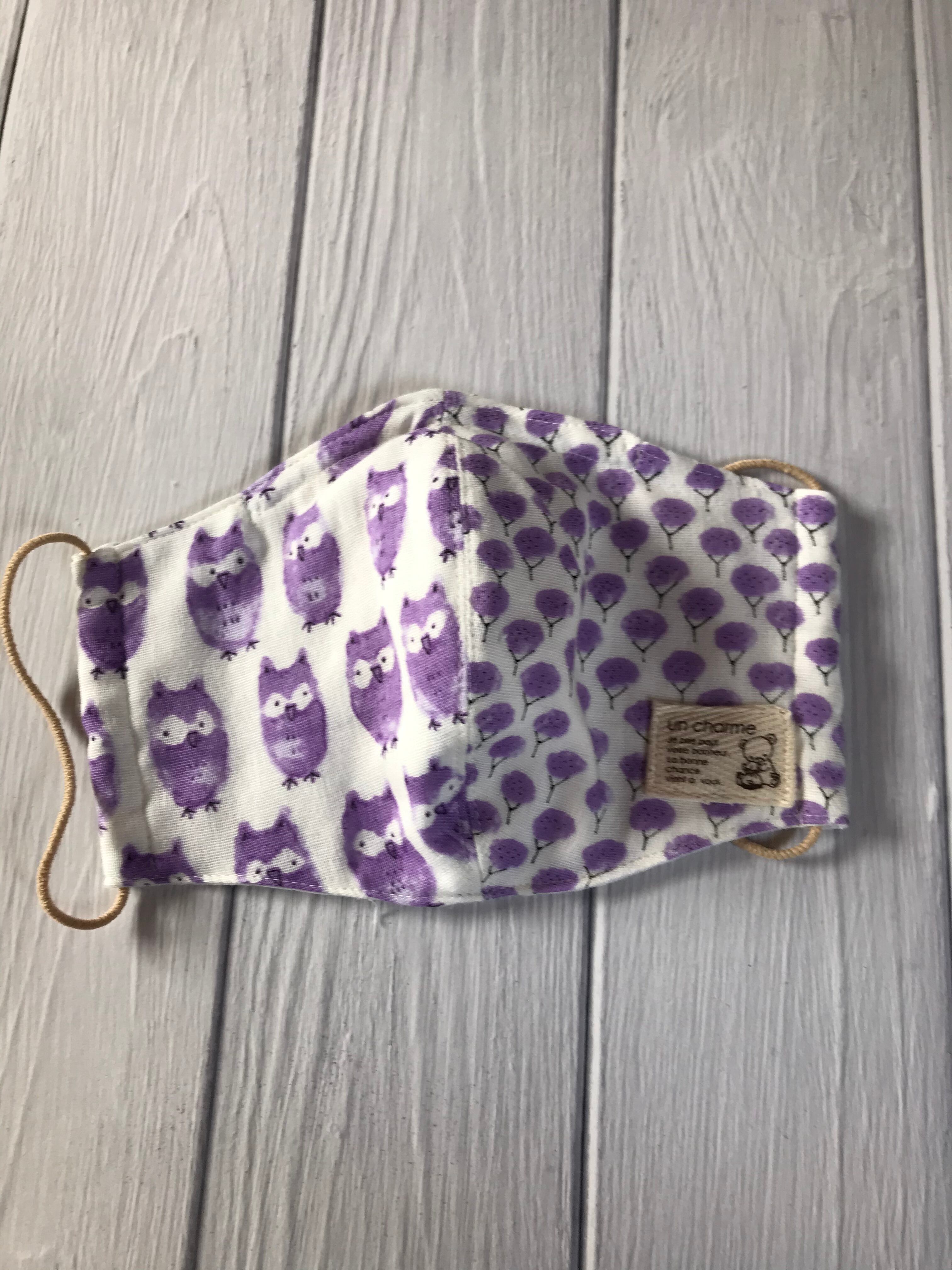 60.大人サイズ 立体マスク 水通し済み くまちゃんタグ付き ふくろうムラサキ