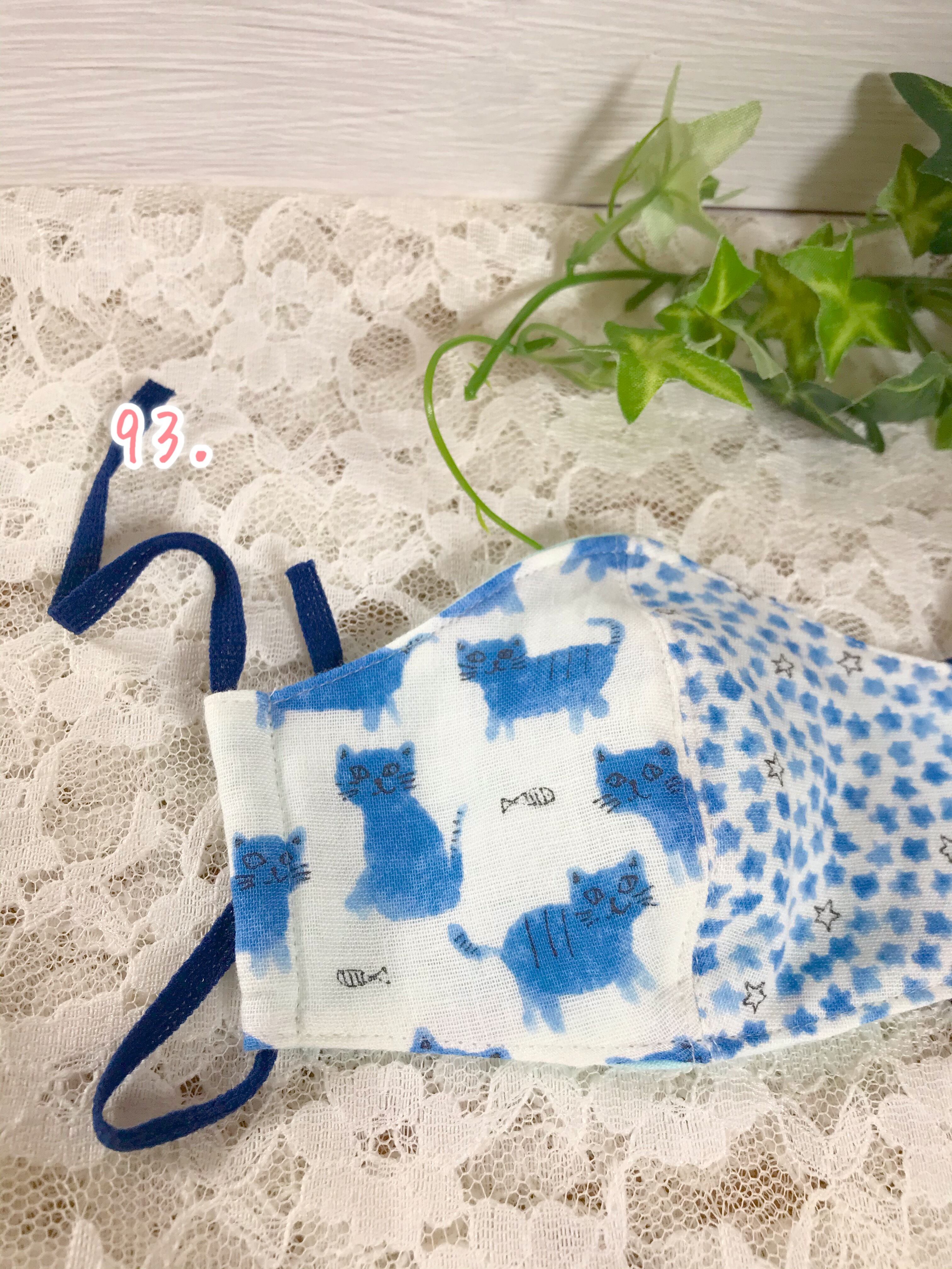 93.子供サイズ 立体マスク Wガーゼ 水通し済み 猫ちゃんと星のバイカラー