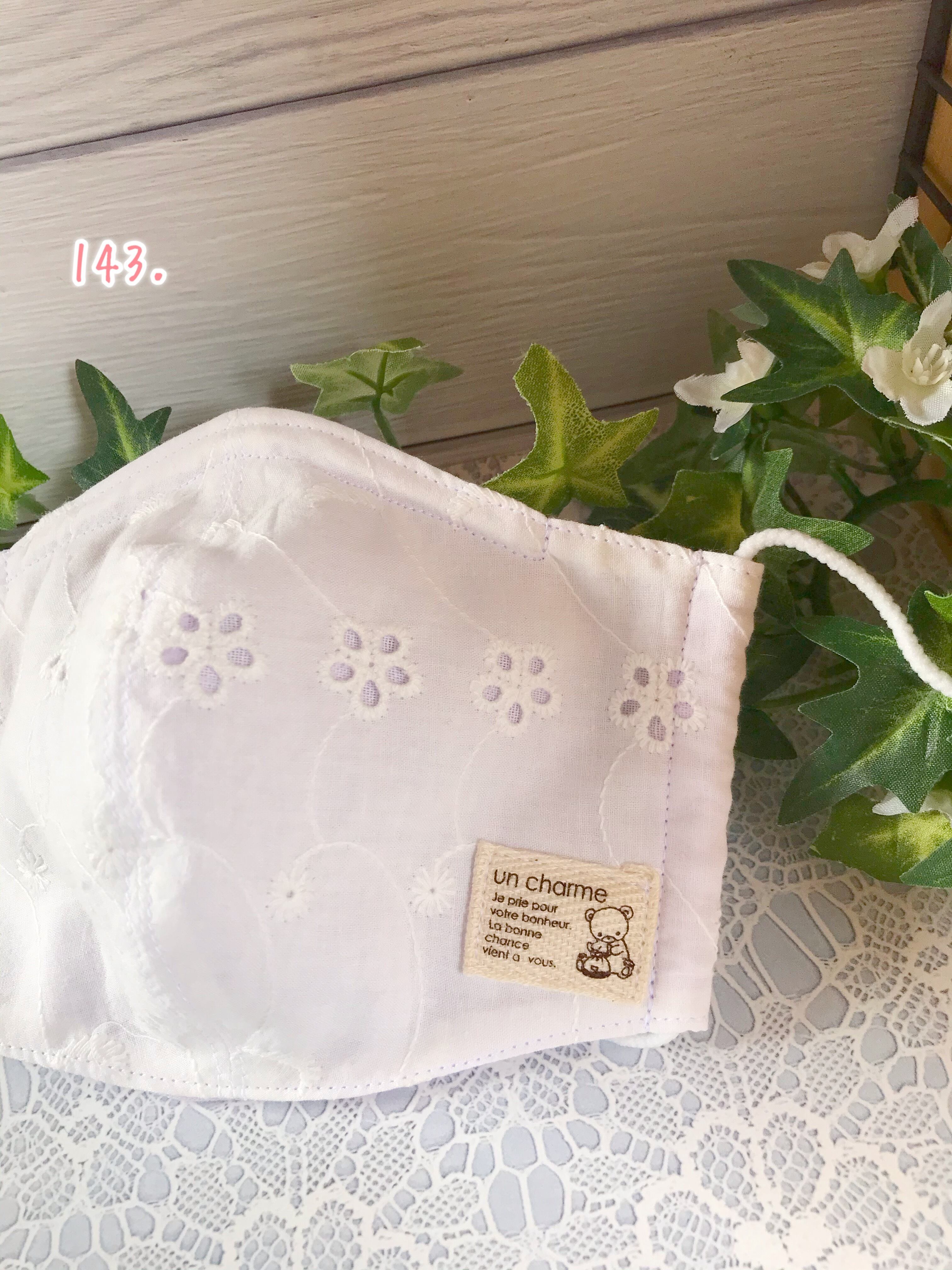 143.大人サイズ 立体マスク ノーズワイヤー入りくまちゃんのタグ付き コットンレース