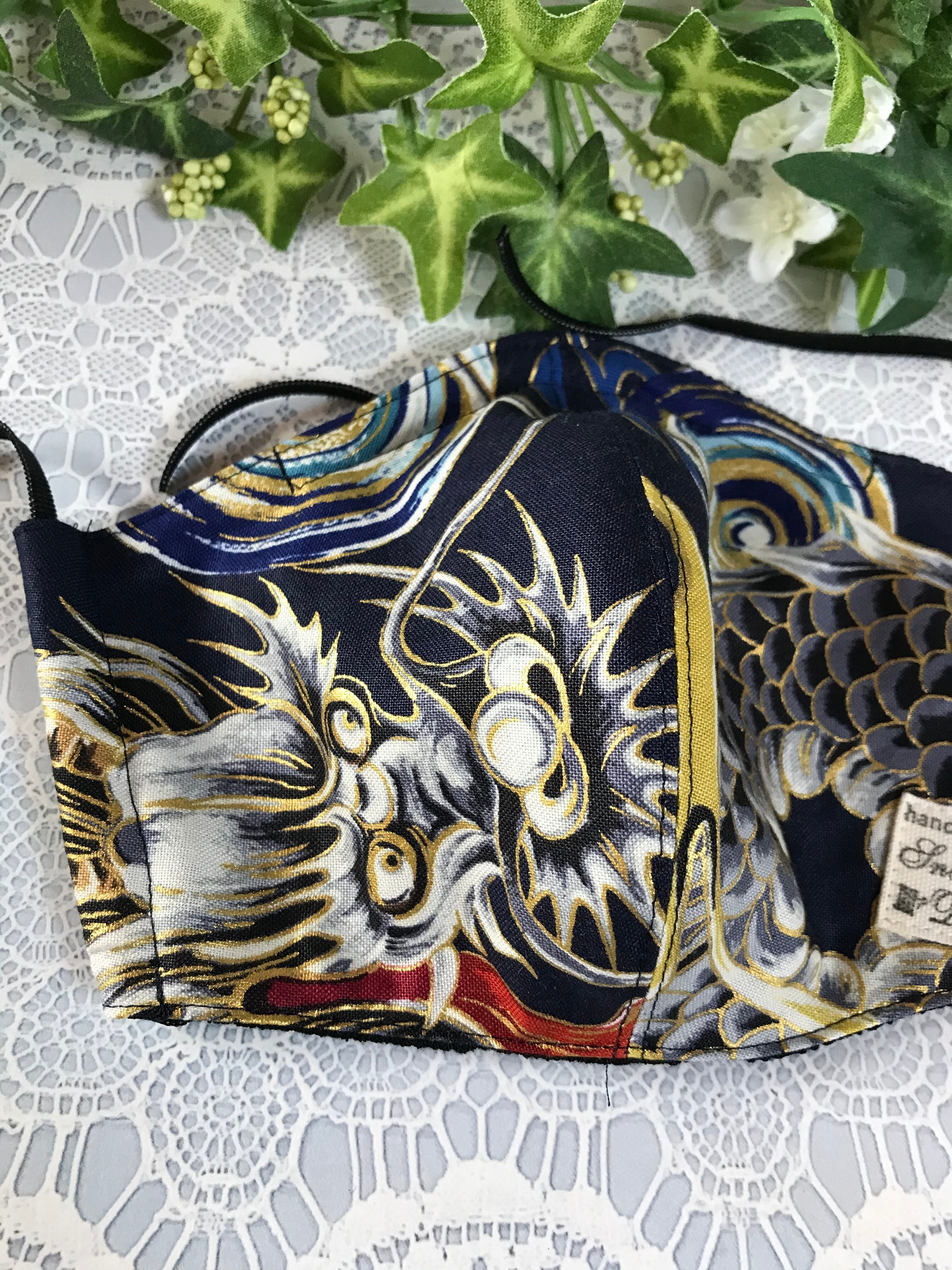 272. 1点もの 立体マスク 大人サイズ 水通し済み ノーズワイヤー入り 龍神様 タグ付き
