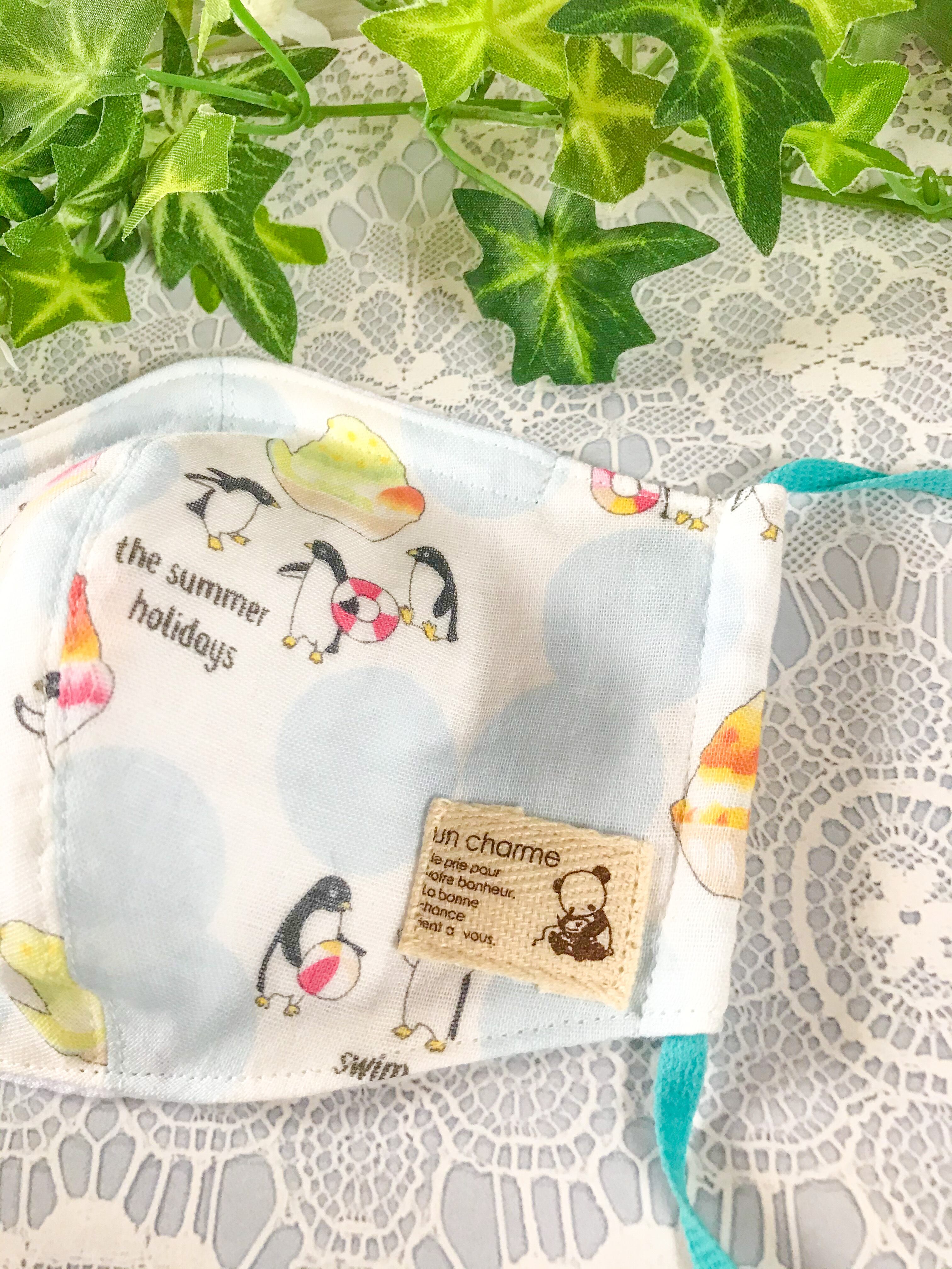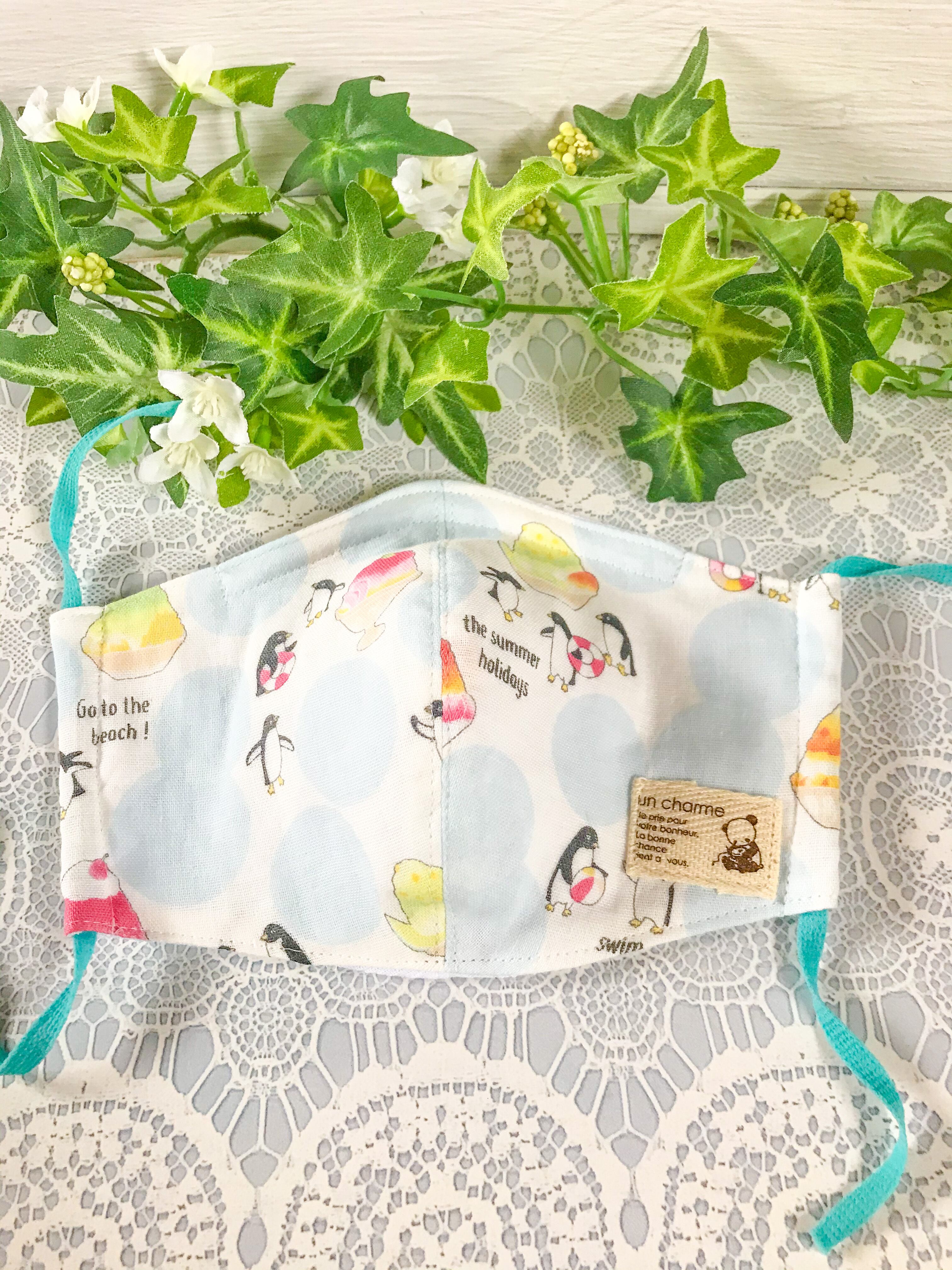 #立体マスク#マスク#ハンドメイド##コロナウイルス対策#ウィルス対策#ゆめかわ#パステル#タグ付き#可愛い#かわいい#kawaii#ウィルス予防#制菌作用#子供用#てづくり#手作り#マスク#ダブルガーゼ#wガーゼ#抗菌ゴム#中学年#高学年#大人#水通し済み#ペンギン#かき氷#夏#アイス#高島ちぢみ